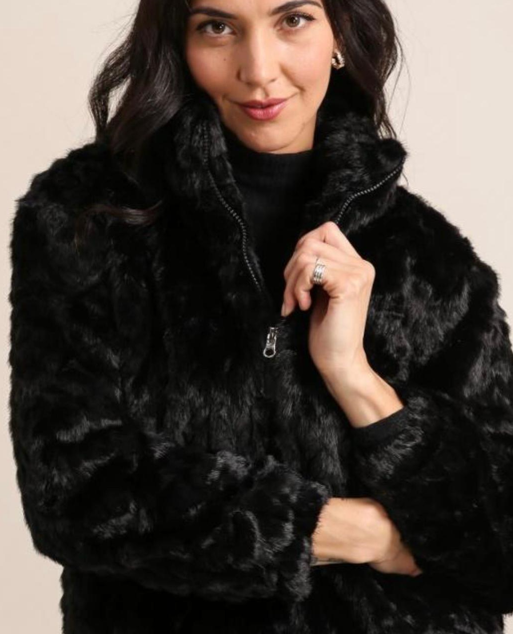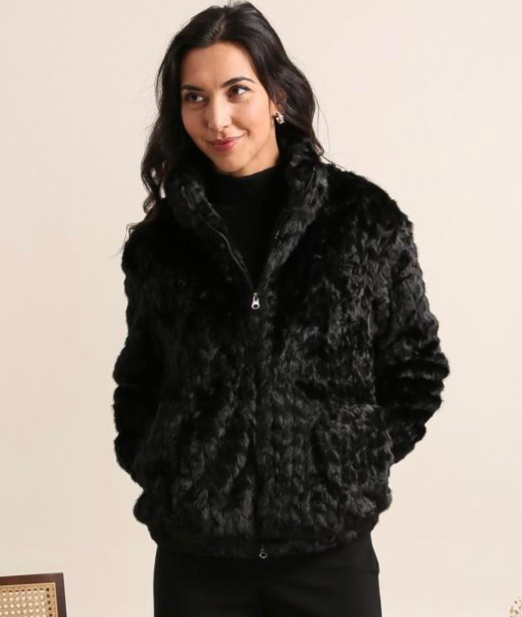 Blusão de pelo com elástico no cós e nos punhos de meia gola