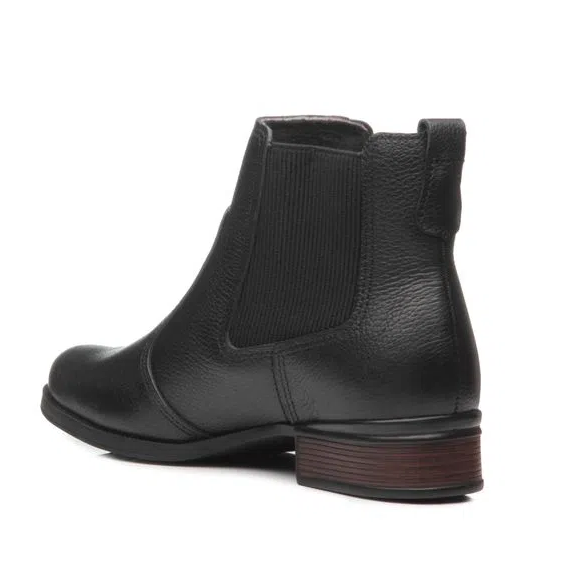 Bota em couro preto é super estilosa. Essa bota é feita com o nosso sistema Soft Touch, onde cada detalhe é pensado para deixa-la extremamente macia, desde a matéria prima até os processos de produção. São muitos diferenciais, começando pelo forro, que é de tecido atoalhado e toque suave. A palmilha é macia. Já o solado é antiderrapante e de alta flexibilidade, oferecendo conforto e versatilidade ao produto, e possui sistema Bubble Impact, com pequenas bolhas na parte inferior que reduzem os impactos. Além de tudo isso, as costuras utilizadas na sua produção são programadas (automáticas), assim não é necessário usar cola entre as partes do couro do cabedal, desta forma o couro continua com a sua maciez original e não fica endurecido. Tudo isso para deixar o calçado macio e confortável para o uso. O modelo ainda possui elástico em ambos os lados, facilitando o calce. Clássica, fácil de calçar e de combinar, ela é perfeita para quem procura por estilo sem abrir mão do conforto. Sinta esse conforto você também.