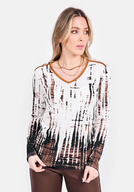 Camisola estampada decote em bico com vivo