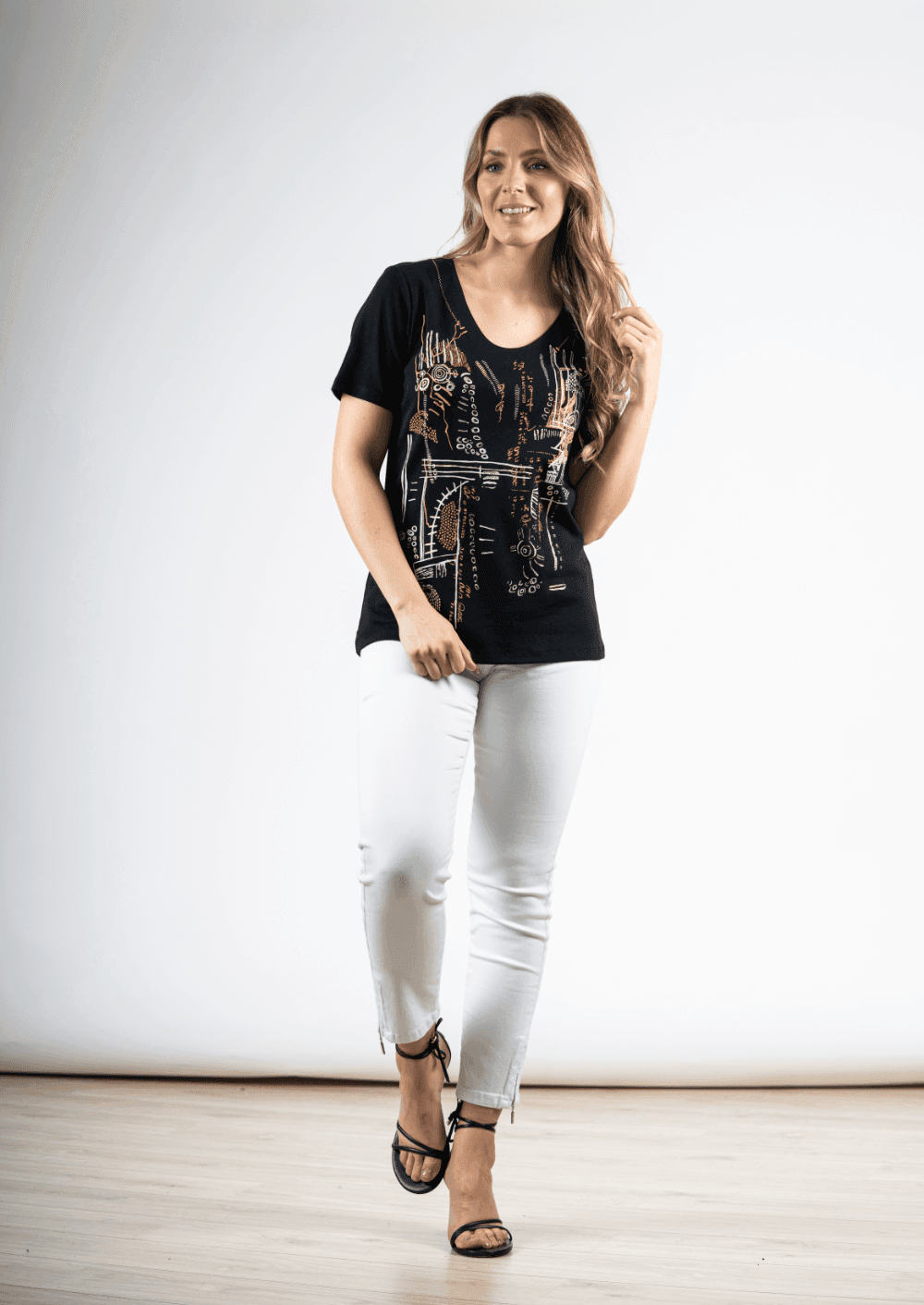 Estampada na frente e lisa nas costas