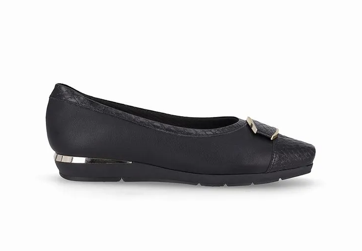 Despojado e essencial, o sapato une a elegância para a acompanhar em todas as ocasiões. A peça conta com PICCADILLY MAXI, o primeiro e único calçado brasileiro com tecnologia certificada na ANVISA. Com materiais que aumentam a elasticidade, ela se molda ao formato dos pés prevenindo as dores do joanete e deixando a área mais discreta. O calçado é supere flexível e ainda possui acabamento supere conforto, espuma fofinha no calcanhar, forro supere fofinho e solado supere aderente tornando-a indispensável para quem precisa ficar horas de pé no trabalho. Um toque de glamour que complementa tanto looks formais quanto casuais.